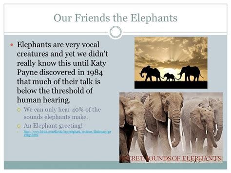Objects rattled when elephants were nearby. Her chest felt pressure. The air felt thick even when the animals stood still. Once recording equipment was adjusted to capture very low frequencies it became clear that elephants were constantly producing sound that often humans were simply not built to notice.