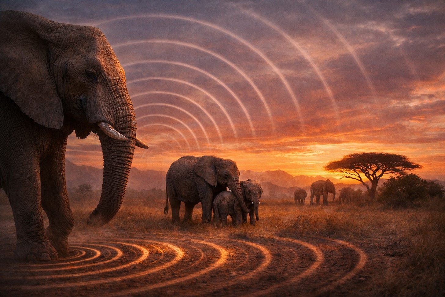 Cats “purr” at close range. Elephants use similar mechanics at a much larger scale. Both rely on continuous low frequency vibration rather than sharp signals because it stabilizes rather than disrupts. What sounds like quiet to us is often dense with information. In the case of elephants the most important communication rarely announces itself. It moves through ground and bodies doing its work without much spectacle.