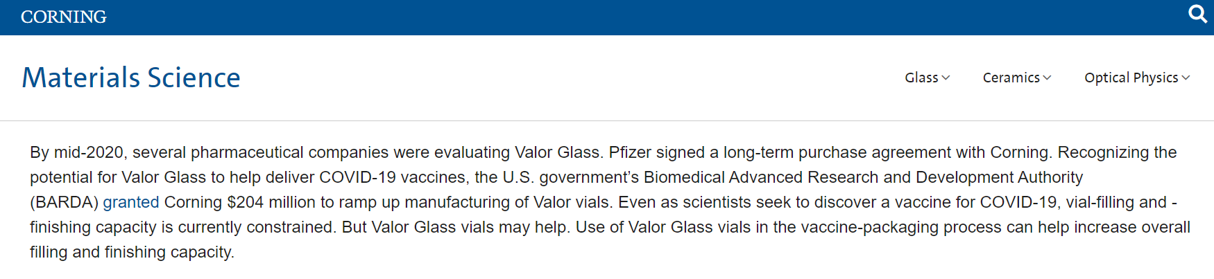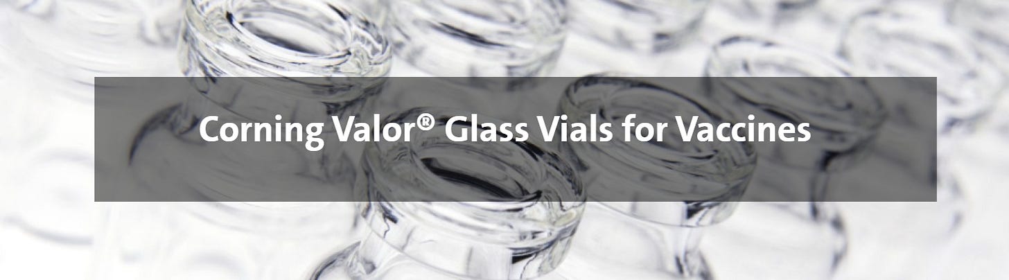 It is interesting to note that Pfizer signed a long-term purchase agreement with Corning for their supposedly novel vials for COVID-19 vaccine manufacturing (and even though they had already announced this collaboration back in 2017).