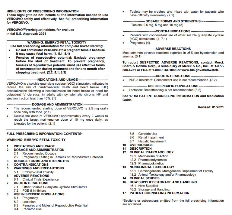 In yet another peculiar set of coincidences, on January 20, 2021, Merck (who had also partnered with Corning for the novel glass vials in 2017) received FDA approval for a novel medicationVerquvo (vericiguat), a soluble guanylate cyclase (sGC) stimulator, to reduce the risk of cardiovascular death and heart failure hospitalization in adults with symptomatic chronic heart failure and ejection fraction less than 45%. The timing is opportune for introducing a medication designed for these particular cardiac conditions, especially considering that individuals who have received COVID-19 vaccines are experiencing similar cardiac issues.