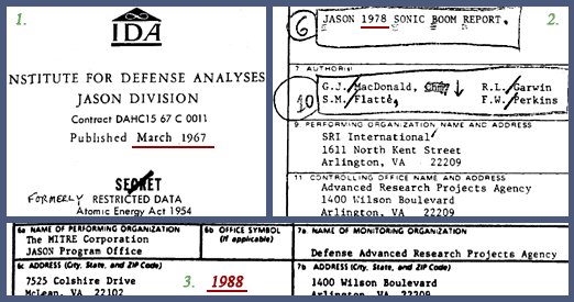 The above compilation of three different JASON studies shows how the organization it was part of changed over time. [4] In the late 1960s it was incorporated within IDA; in the late 1970s it had been moved to Stanford Research Institute International (SRI); and in the late 1980s the JASONs had become part of the MITRE Corporation. Most studies were commissioned by DARPA, but other contractors have been the Department of Energy, the Department of Defense, the U.S. Army Research Office, the NRO, and a few other organizations.