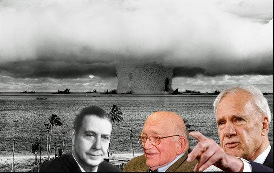 Alvarez was also part of a Los Alamos committee in 1979 which in all likelyhood covered up Israeli nuclear bomb tests in the Indian Ocean by claiming the detected flashes could have been due to "unusual weather conditions". (2006, Michael Karpin, 'The Bomb in the Basement'). It is known that one of Alvarez's colleagues, the rabidly anti-communist hardliner and father of the hydrogen bomb, Edward Teller, a leading member of the American Security Council, was close to the Israeli leadership and advised the country on nuclear matters. It is also known that Israel received enormous support from elements in French and U.S. intelligence in setting up a secret nuclear weapon program.