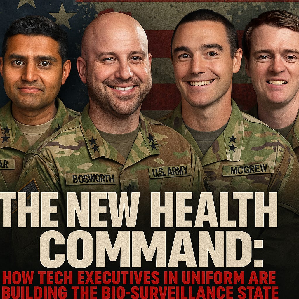 When four Big Tech executives were quietly sworn into the U.S. Army Reserve this summer—not as privates, but as lieutenant colonels—it wasn’t a feel-good tech-meets-patriotism story. It was a signal: the next phase of control will be coded as health, framed as national security, and protected by law.